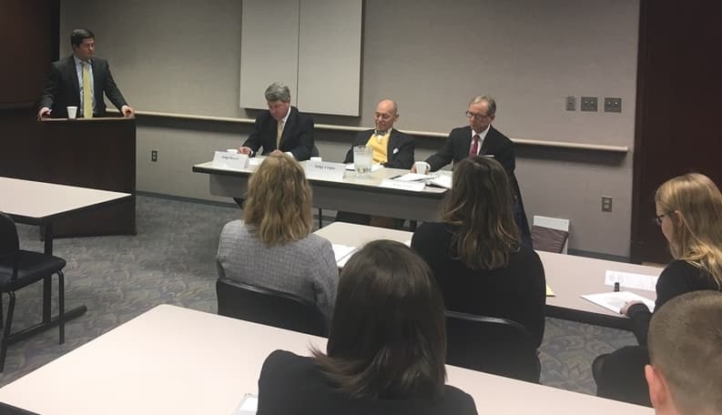 The panelists included the Honorable B. Waugh Crigler (Ret.), former U.S. Magistrate Judge for the Western District of Virginia, now of the McCammon Group, the Honorable Thomas B. Hoover (Ret.), formerly of the 9th Judicial Circuit of Virginia, and now of The McCammon Group and the Honorable Lawrence B. Cann III of the Richmond General District Court, 13th Judicial District of Virginia.
