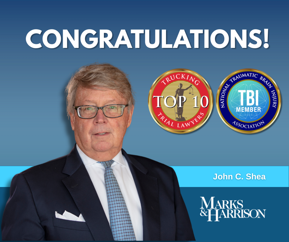 Marks & Harrison is proud to announce that Partner John C. Shea has been named a member of the National Traumatic Brain Injury Association and the Trucking Trial Lawyers Association – Top 10.