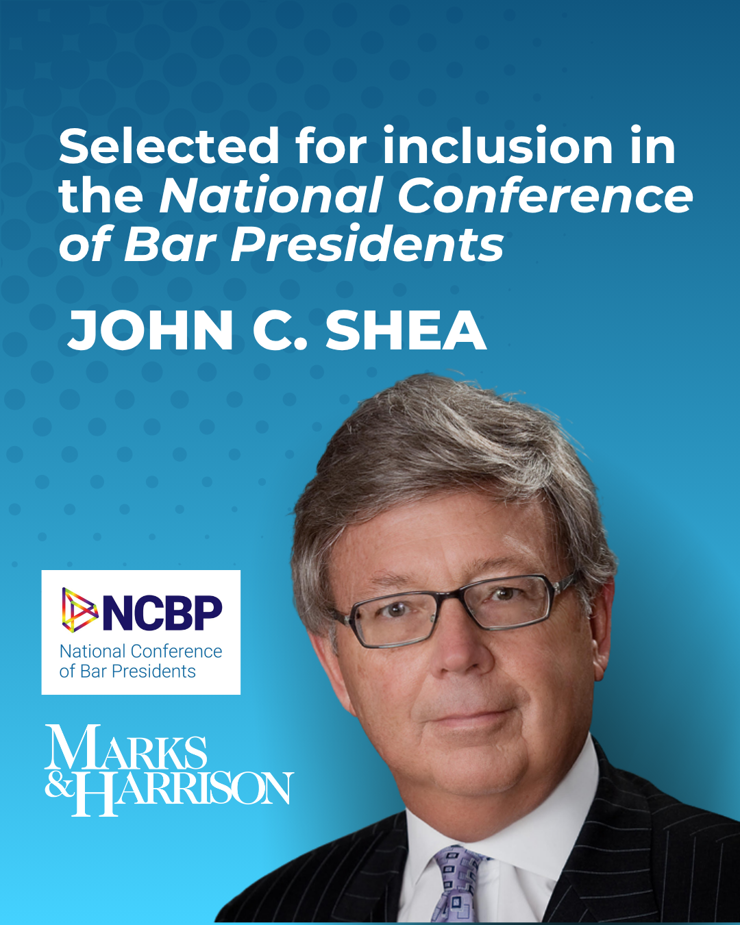John C. Shea of Marks & Harrison has joined the National Conference of Bar Presidents (NCBP). This membership honors his leadership within the legal community, including his time as President of the Virginia Trial Lawyers Association (VTLA) from 2001 to 2002. Founded in 1950, the NCBP provides essential information and training to state and local bar association leaders, drawing its members from organizational bars across 53 states and territories.
