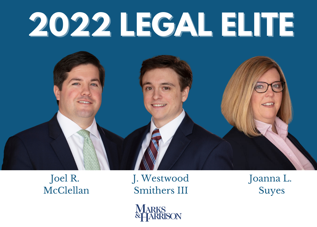 Marks & Harrison is proud to announce that three of our attorneys have been recognized as 2022 Legal Elite by Virginia Business. The attorneys named are Joel R. McClellan, J. Westwood Smithers III and Joanna L. Suyes. Launched in cooperation with the Virginia Bar Association, the Legal Elite polls lawyers licensed to practice in Virginia each […]