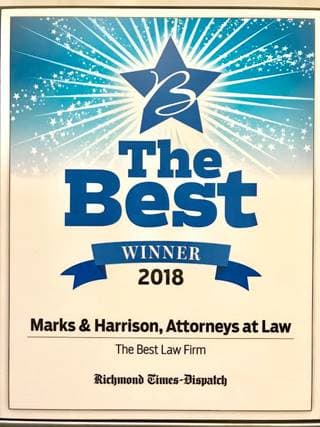 For the fourth year in a row, Marks & Harrison was voted The Best Law Firm in Richmond by readers of the Richmond Times-Dispatch. The “RTD The Best” contest, which is aimed at identifying the most popular local businesses, began in the summer of 2015. This year, nearly 313,000 votes were cast in 109 categories.