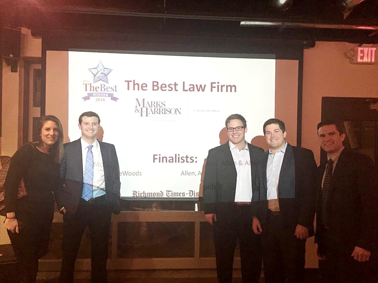 Marks & Harrison is proud to announce that we were voted the Best Lawyer in Style Weekly’s 2017 Best of Richmond Issue for the second year in a row. Winners were chosen based on reader votes from Feb. 1 to March 17. Thousands of ballots were cast anonymously during the voting period. The poll was […]